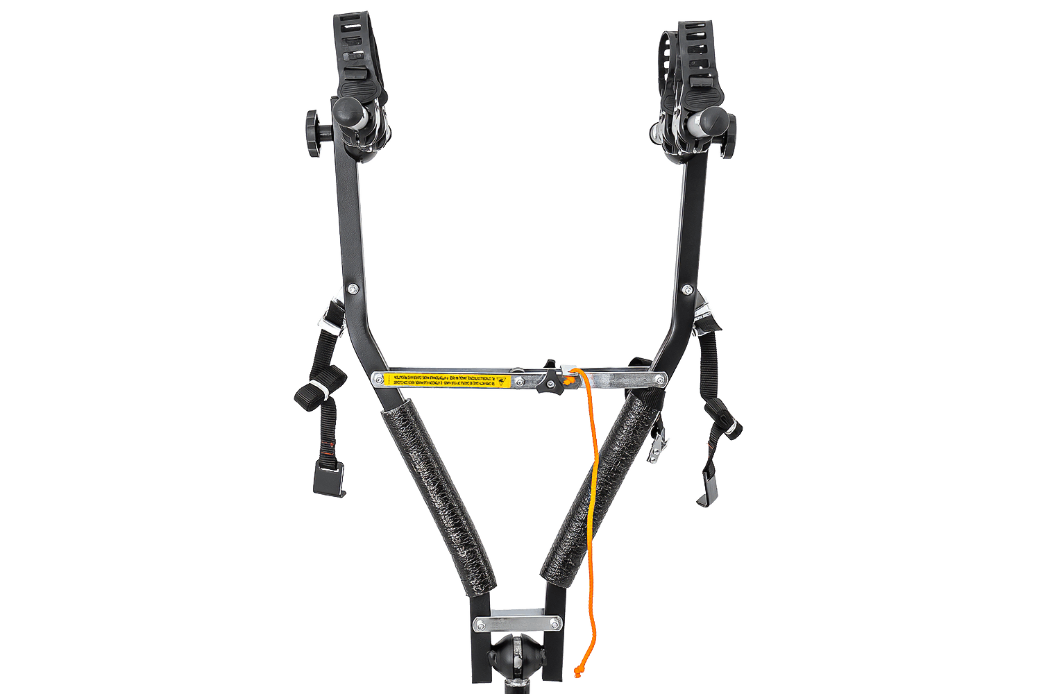 Ein großer Vorteil dieses Gepäckträgers ist sein durchdachtes Befestigungssystem. Jedes Fahrrad sitzt sicher in der dafür vorgesehenen Halterung , die mit einem robusten, verstellbaren Gummiband gesichert ist. So können Sie Fahrräder mit breiten und schmalen Rahmen effizient transportieren.