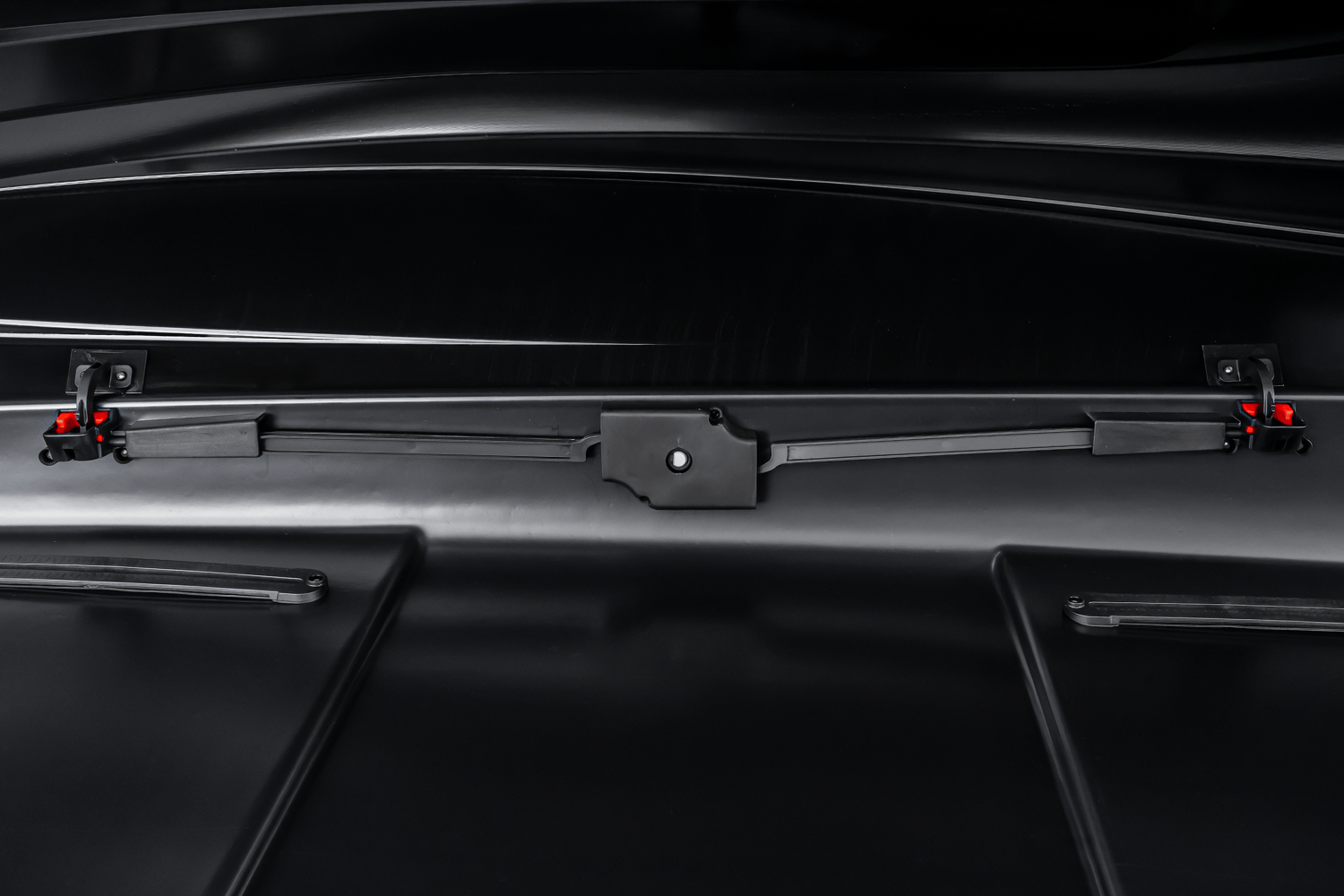 Das Set enthält außerdem Textilgurte zur Sicherung des Gepäcks während des Transports (die Box verfügt über spezielle Stellen zum Befestigen der Gurte, die in das Befestigungssystem eingebettet sind).