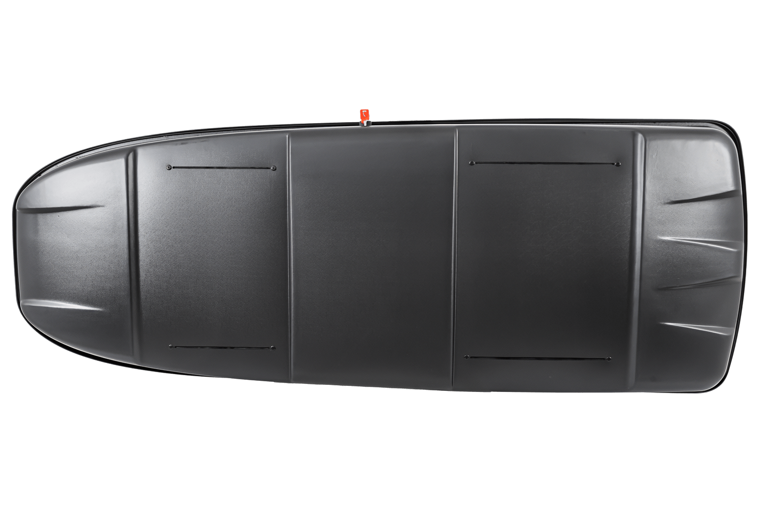 Die Form der Dachbox ist so konzipiert, dass innerhalb der Innenmaße ( Länge 186 cm x Höhe 35 cm x Breite 63,8 cm) möglichst viel Gepäck transportiert werden kann.