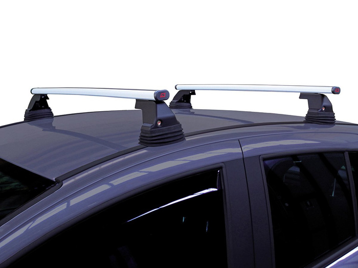 W zestawie znajdują się owalne belki aluminiowe o długości 127 cm oraz 4 mocowania do dachu.