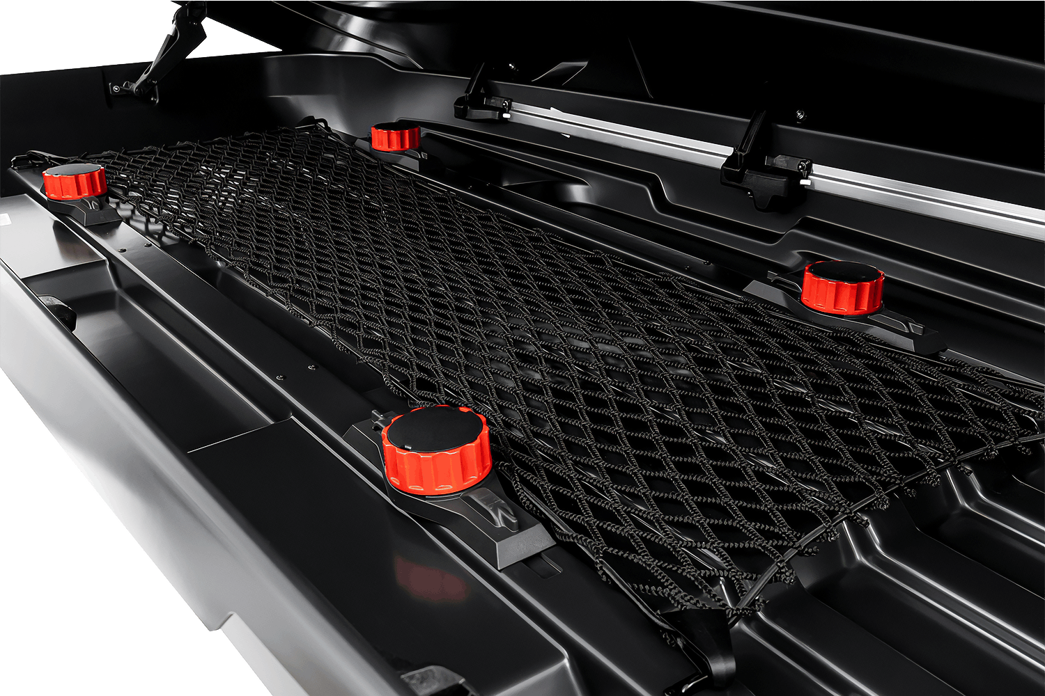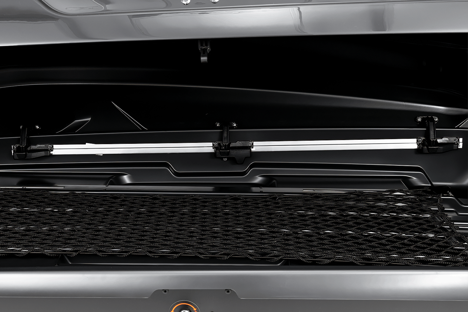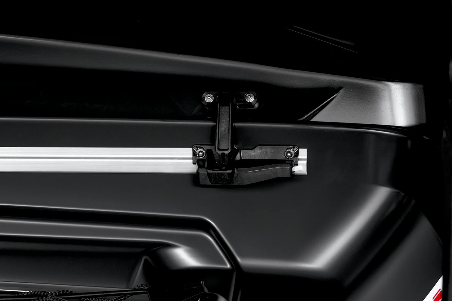 Das Rapid Fit -Montagesystem gewährleistet eine schnelle, sichere und einfache Installation der Box auf dem Dachgepäckträger. Es passt auf alle Arten von Stangen : rechteckig, oval und flügelförmig.