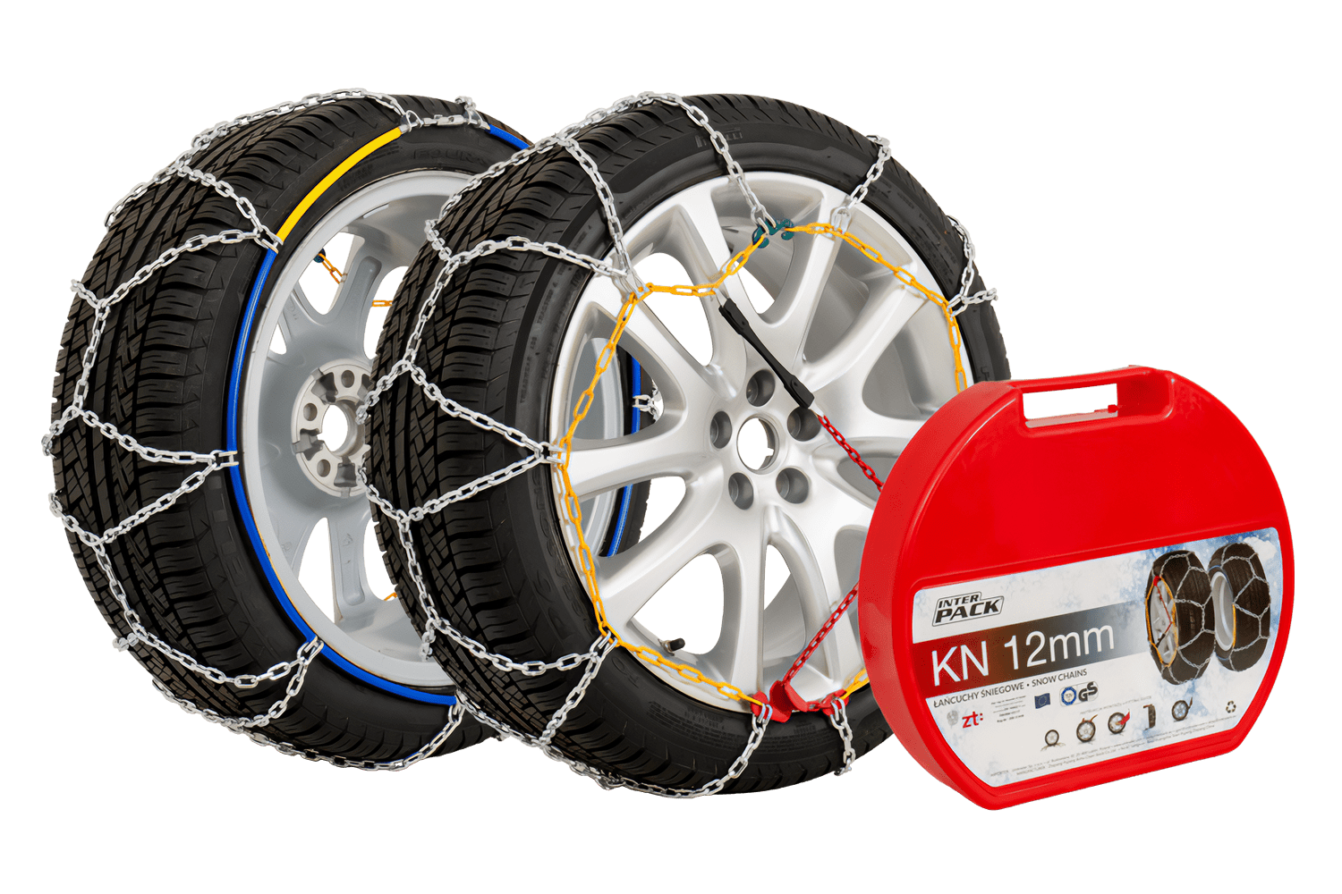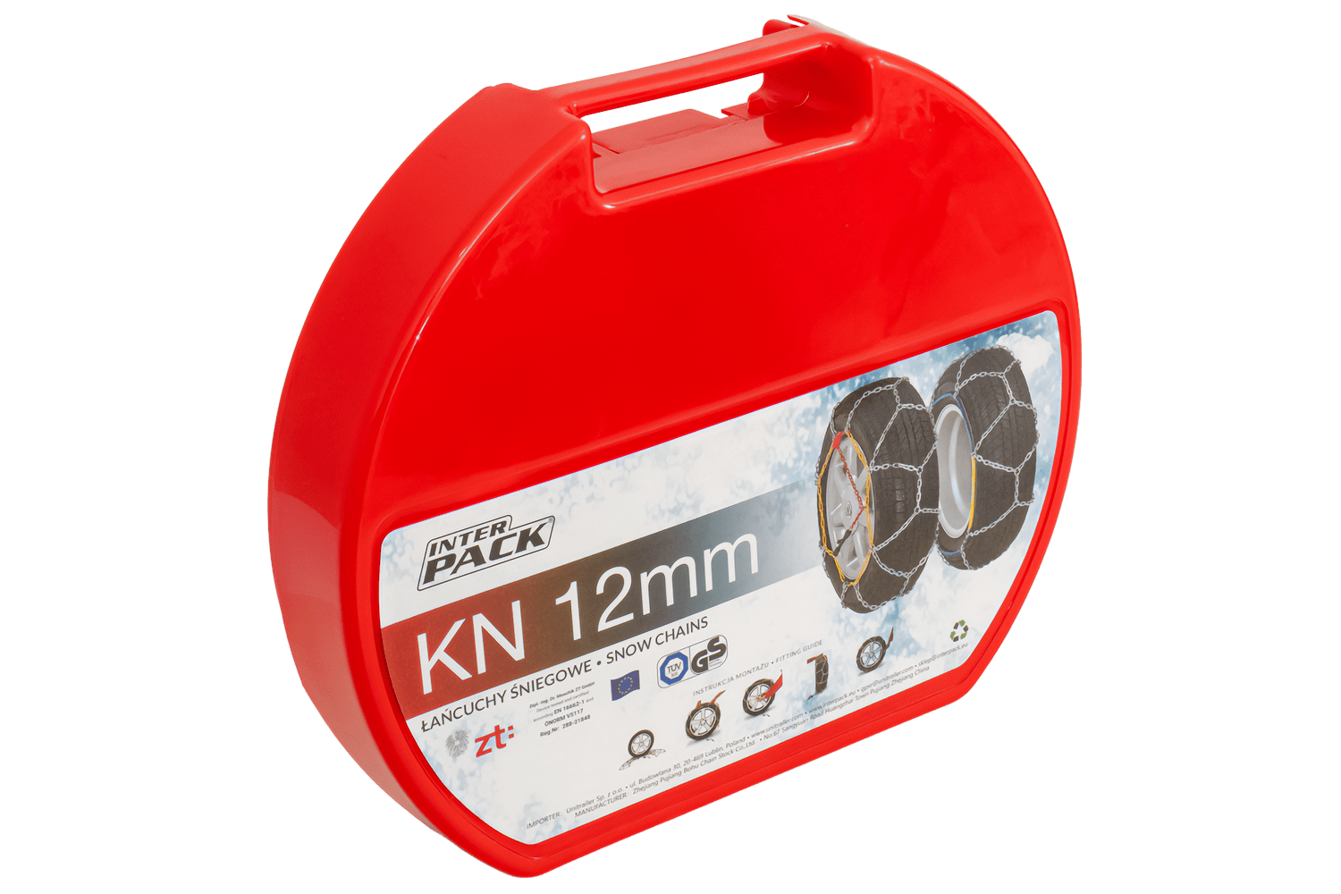 - Inter Pack KN – robuste Schneeketten für PKW. 12 mm Gliederstärke, einfache Montage ohne Überfahren. Das rautenförmige Design verbessert die Traktion und verhindert Schlupf. ABS- und ESP-konform sowie TÜV-, GS- und Ö-Norm V5117-zertifiziert.