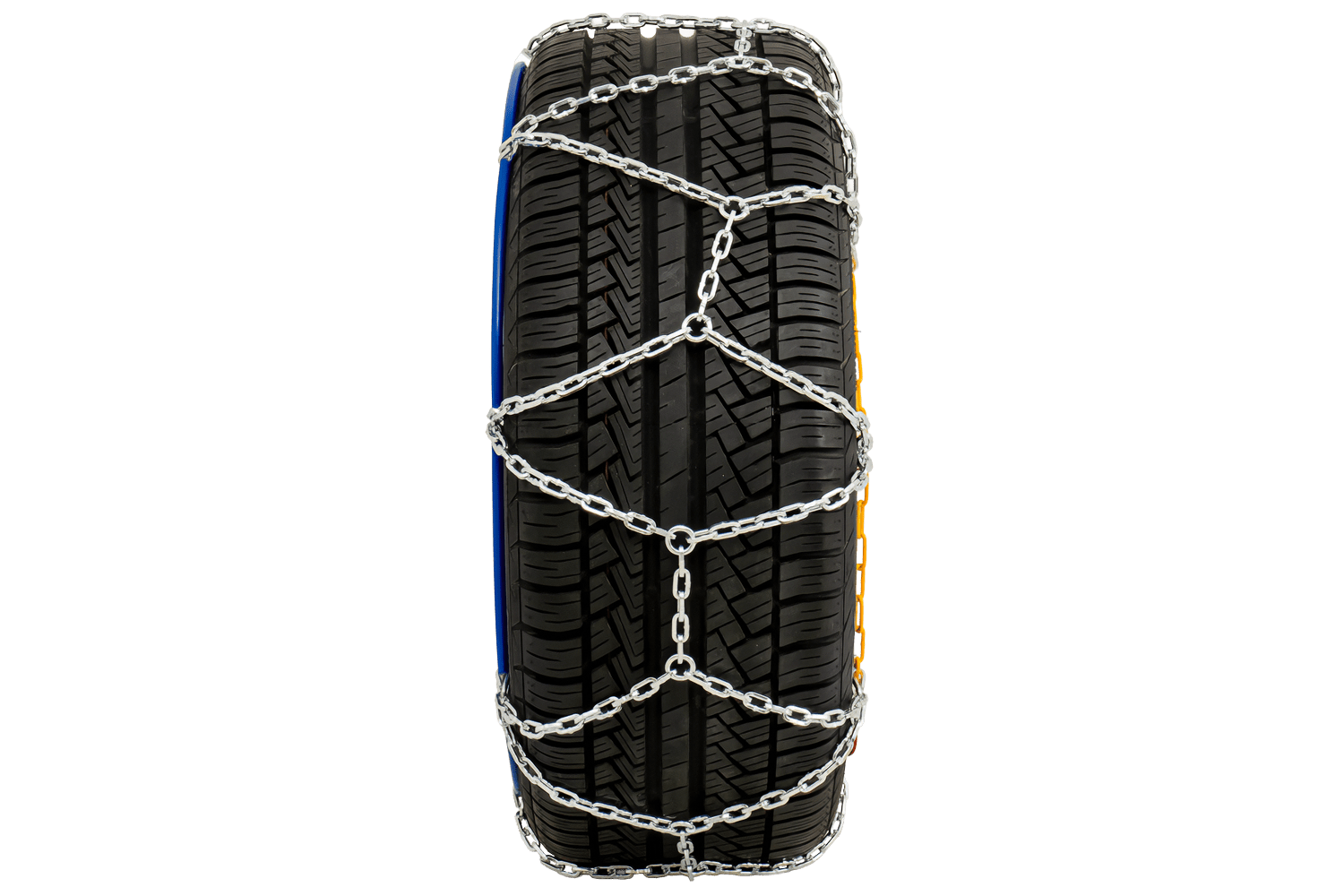 Die 12 mm starken Glieder bestehen aus hochwertigem, gehärtetem Stahl und bieten so eine erhöhte Verschleiß- und Rissbeständigkeit sowie eine längere Lebensdauer. Ein spezielles Rautenmuster verbessert die Fahrstabilität , verringert das Risiko eines seitlichen Rutschens und ermöglicht ein sichereres Kurvenfahren. Der quadratische Querschnitt der Glieder verbessert die Traktion zusätzlich und gewährleistet sicheres Bremsen auch auf vereisten Oberflächen.