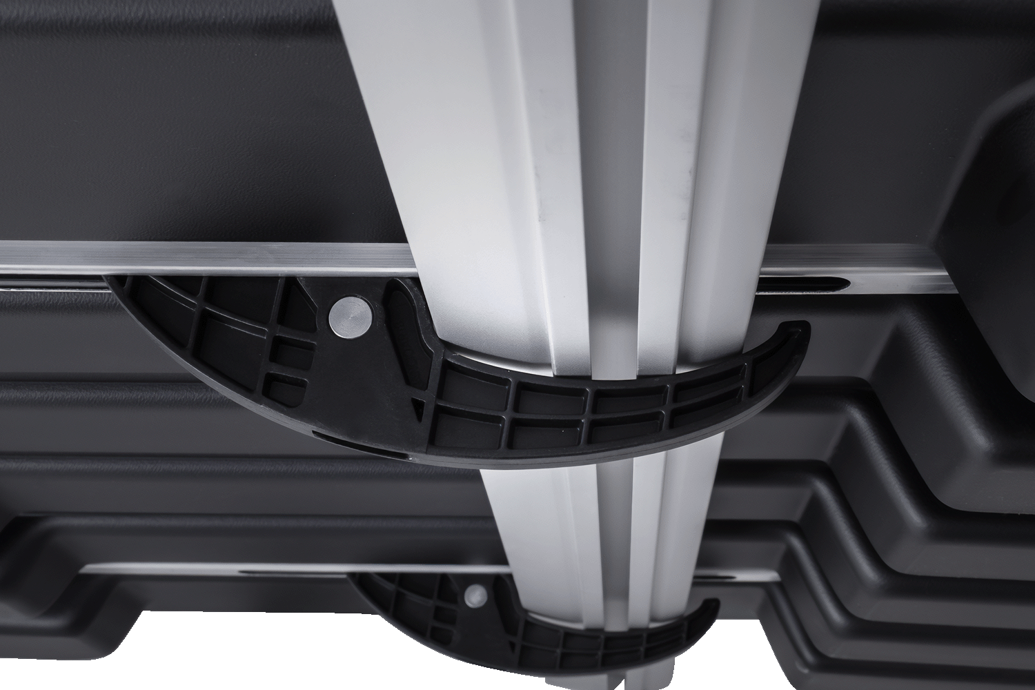 Das Rapid Fit -Montagesystem gewährleistet eine schnelle, sichere und einfache Installation der Box auf dem Dachgepäckträger. Es passt auf alle Arten von Stangen: rechteckig, oval und flügelförmig.