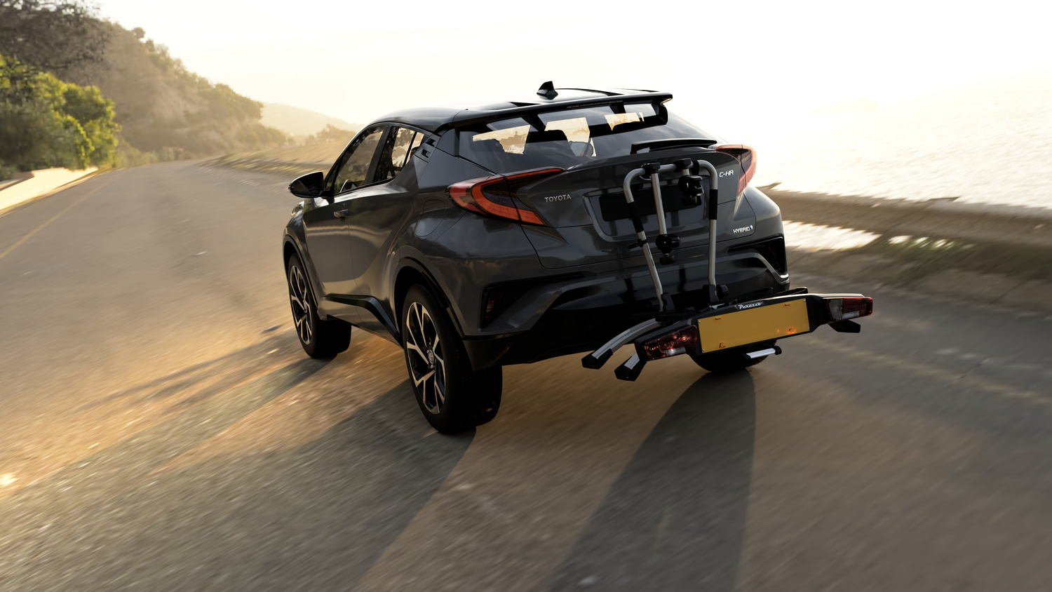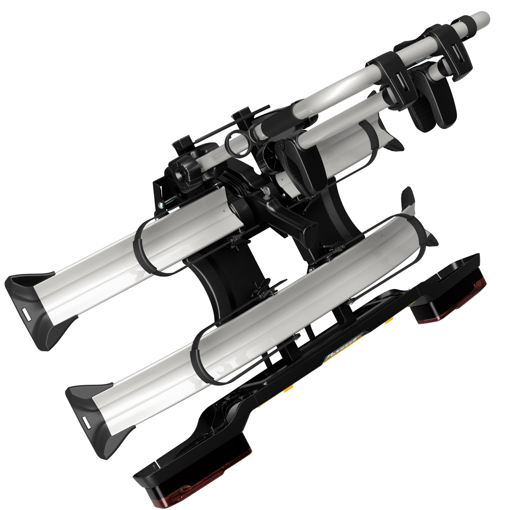 Entwickelt für den Transport von Elektrofahrrädern und Fatbikes, kann es Fahrräder mit einem Gewicht von bis zu 60 kg transportieren . Neue, verlängerte und breite Fahrradstützschienen nehmen Fahrräder mit einem Radstand von bis zu 1350 mm und einer Reifenbreite von bis zu 12,7 cm auf. Trotz ihrer hohen Tragfähigkeit wiegt die Plattform dank ihrer Aluminiumkonstruktion nur 18,2 kg . Für mehr Komfort ist die Plattform mit Rädern ausgestattet, mit denen sie über den Boden gerollt werden kann.