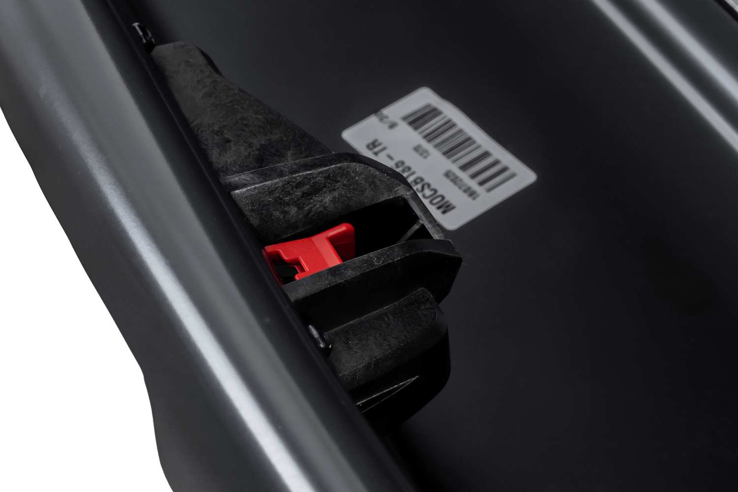 Dieses Modell besticht durch sein modernes Design und die robuste Konstruktion aus UV- und witterungsbeständigem ABS- Kunststoff . Es wiegt lediglich 13,8 kg und bietet eine maximale Tragfähigkeit von 75 kg . Der untere Teil der Box ist speziell profiliert und zusätzlich mit zwei Metallstreifen verstärkt , um die Stabilität zu erhöhen. Das beidseitige Öffnungssystem vereinfacht das Beladen und den Zugriff auf die Box erheblich, unabhängig von der Fahrzeugseite. Ein zentrales Dreipunktverriegelungssystem garantiert hohe Sicherheit für transportierte Gegenstände. Eine zusätzliche Sicherheitsmaßnahme ist das eingebaute System, das das Abziehen des Schlüssels aus dem Schloss nur bei ordnungsgemäß geschlossenem Deckel ermöglicht.