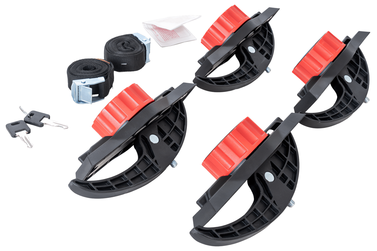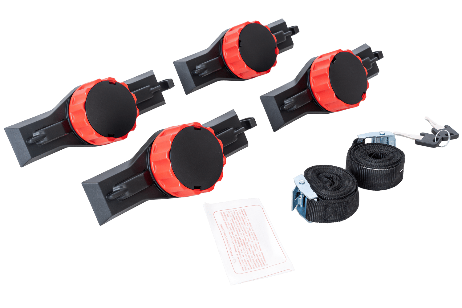 Zum Set gehören außerdem Textilgurte zur Sicherung des Gepäcks während des Transports (die Monsun-Box verfügt über spezielle Befestigungsmöglichkeiten für Gurte).