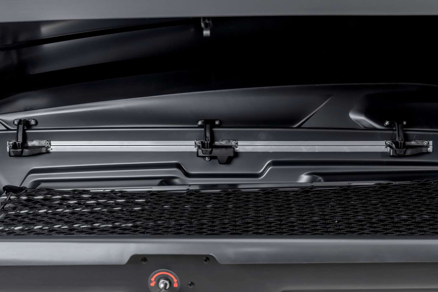 Das Rapid Fit -Montagesystem gewährleistet eine schnelle, sichere und einfache Installation der Box auf dem Dachgepäckträger. Es passt auf alle Arten von Stangen : rechteckig, oval und flügelförmig.