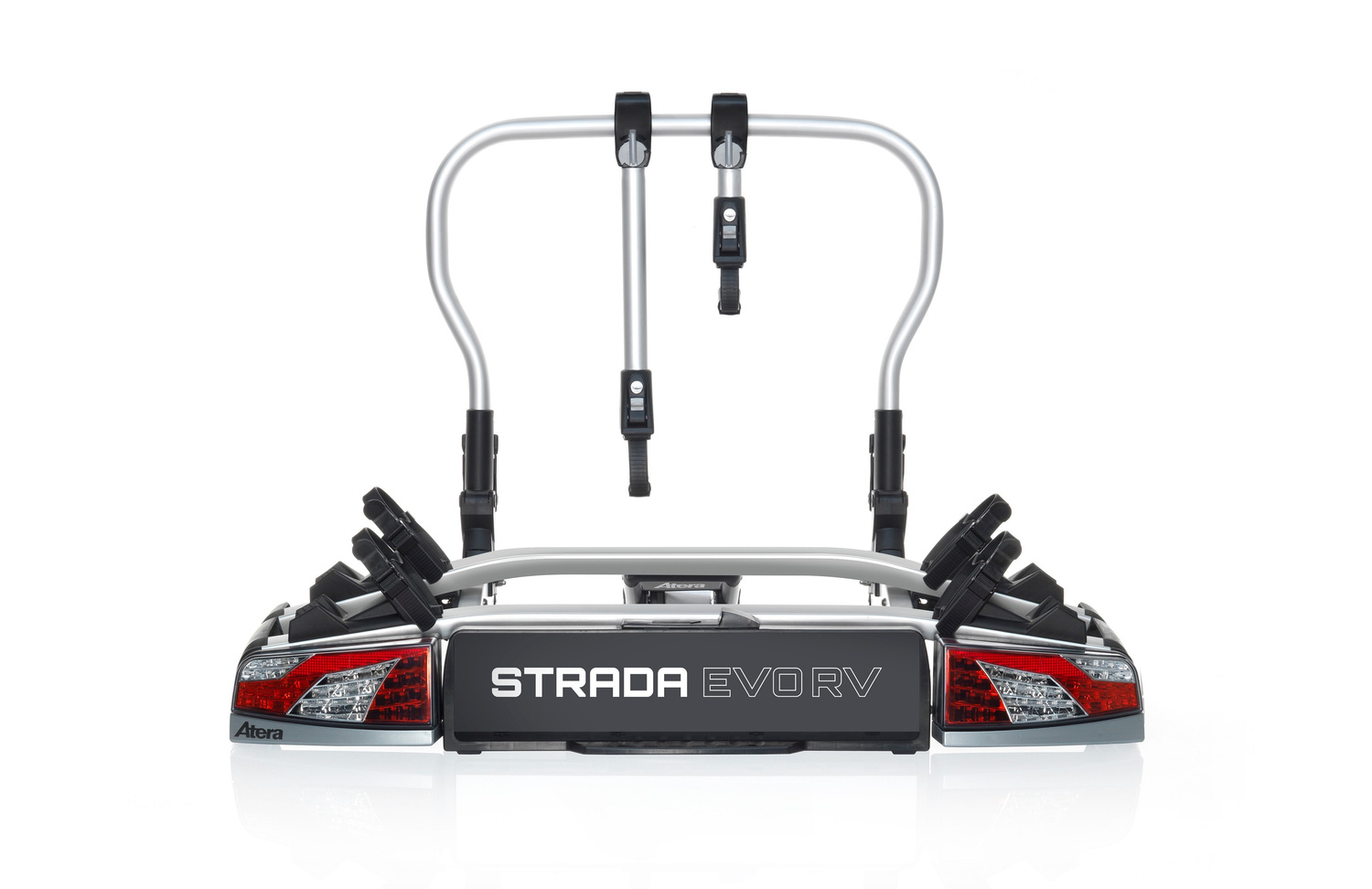 - Der Atera Strada EVO RV 2 ist eine Plattform für Wohnmobile oder andere Fahrzeuge mit seitlich öffnender Heckklappe. Die Rückleuchten bieten ein modernes Design und hervorragende Sichtbarkeit. Er ist erweiterbar und bietet Platz für bis zu drei Fahrräder.