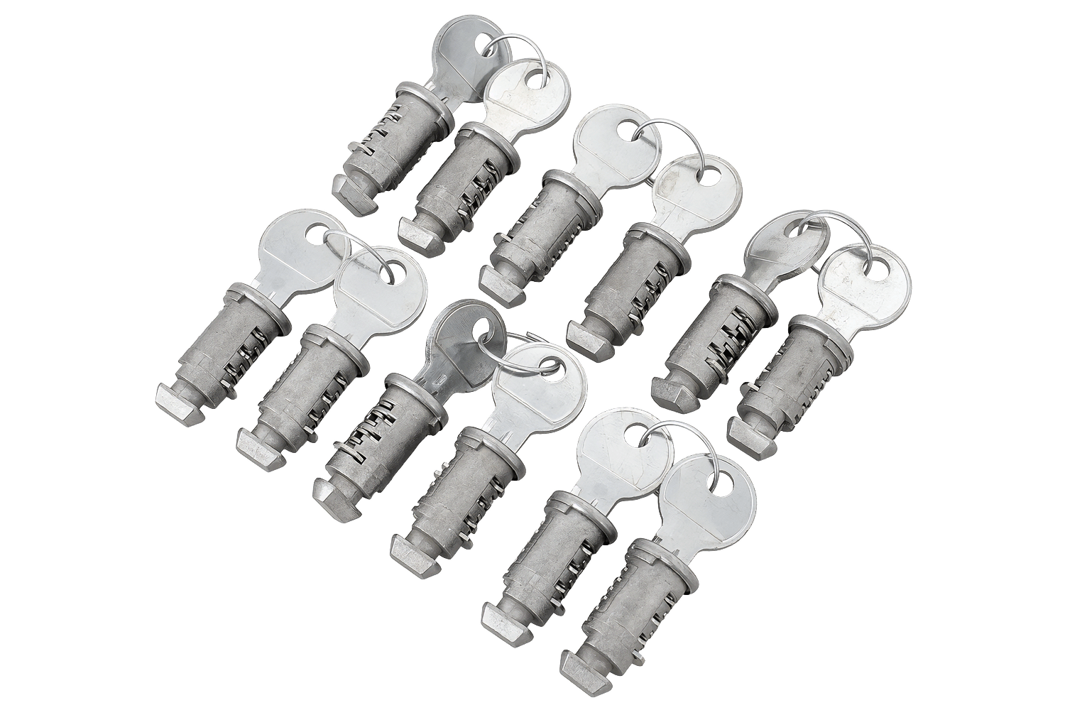 - Universelle, schlüsselschließende Einsätze für Dachträger, Fahrradträger und Skiträger ermöglichen ein einheitliches Schließsystem. Sie gewährleisten Sicherheit, Langlebigkeit und Benutzerfreundlichkeit.