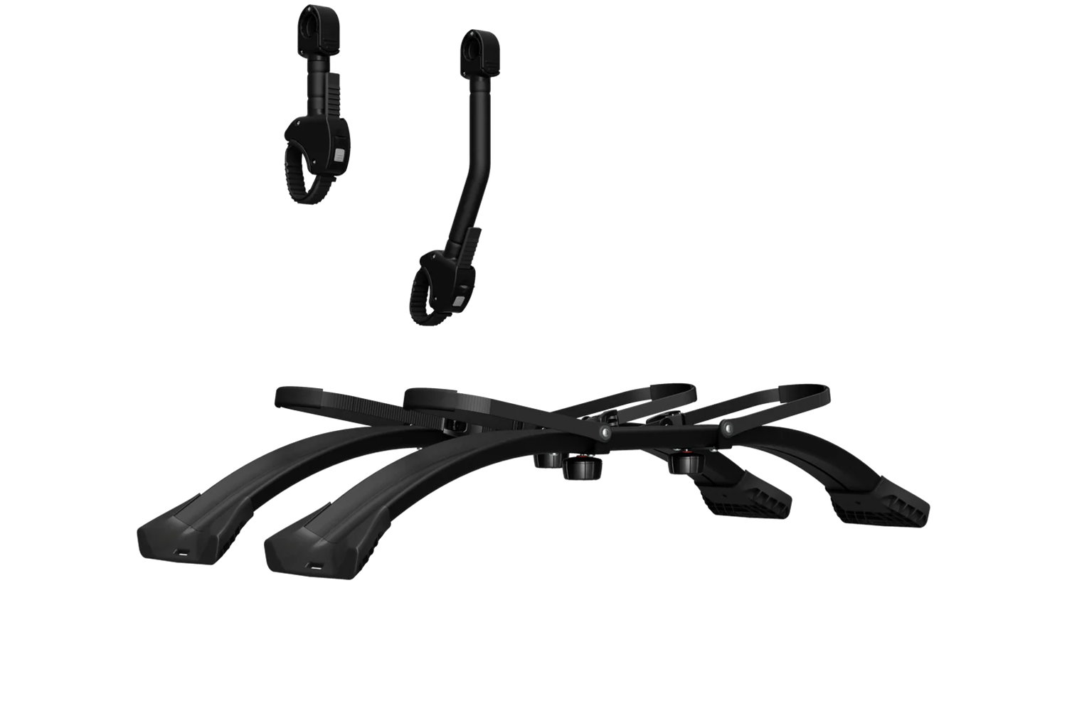Zwei Radhalterungen mit entsprechendem Winkel des Befestigungsgurts ermöglichen eine einfache Anpassung an unterschiedliche Reifengrößen und Fahrraddesigns und die integrierten Zahngurte garantieren eine starke und sichere Befestigung des Fahrradrads .