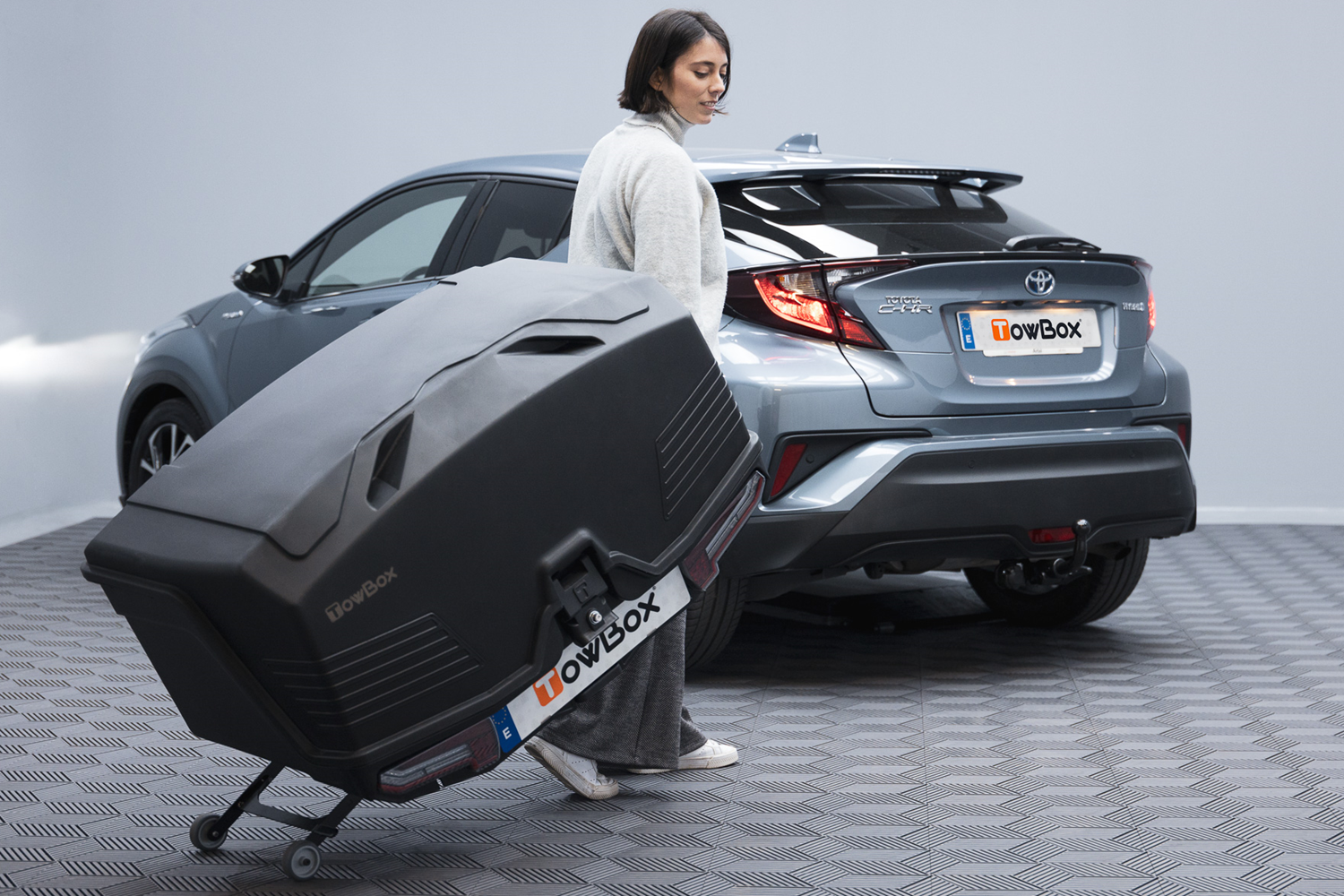Das TowBox Alpha-Modell verfügt über eine vollintegrierte LED-Rückleuchte mit dynamischen Blinkern , was die Sichtbarkeit des Fahrzeugs erhöht und die Fahrsicherheit verbessert . Dank des klappbaren Radsystems lässt sich die Box einfach an der Anhängerkupplung montieren und außerhalb des Fahrzeugs bewegen. Die verbesserte Aerodynamik sorgt für ein stabiles, leises Fahrgefühl und einen geringeren Kraftstoff- bzw. Energieverbrauch im Vergleich zu herkömmlichen Dachboxen.
