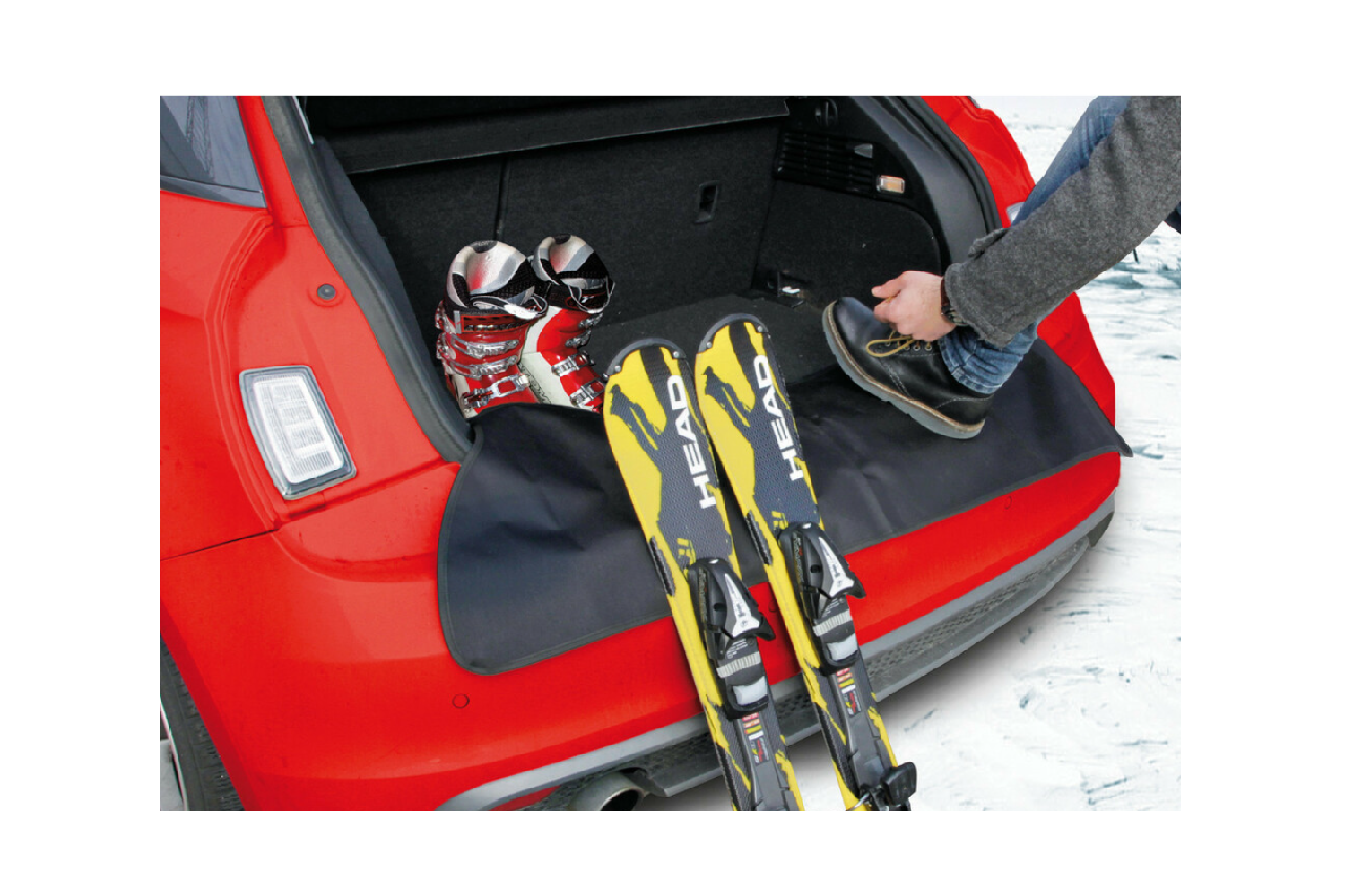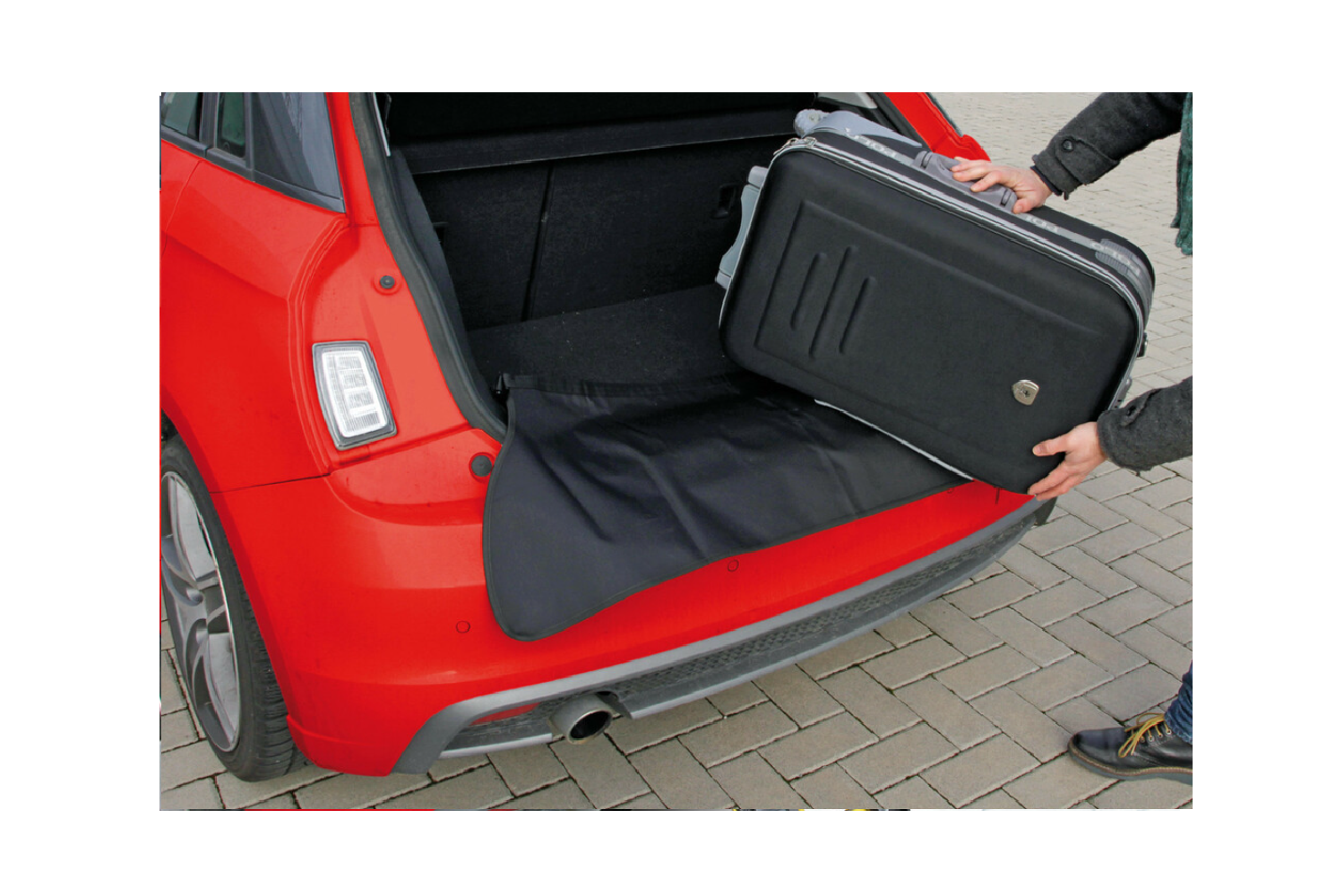 Bei Bedarf einfach die Matte über die Stoßstange klappen und nach dem Beladen wieder im Kofferraum verstauen . Die Abdeckung eignet sich ideal für Pkw, Kombis und SUVs – sowohl für den Alltag als auch für Reisen. Sie schützt den Lack vor Beschädigungen, hält Kleidung sauber und erleichtert das Beladen mit Gepäck, Kinderwagen, Koffern, Werkzeug und Sportausrüstung.