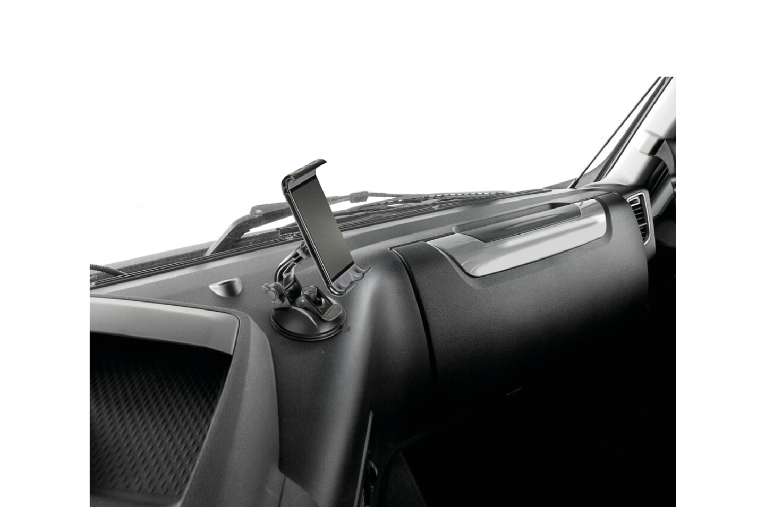 • Die Super Grip Saugnapfhalterung lässt sich an Ihrer Windschutzscheibe oder Ihrem Armaturenbrett befestigen. Sie ist für Smartphones und Tablets mit einer Breite von 115–215 mm geeignet. Ihr Gerät sitzt sicher und bequem, sodass Sie die Navigation während