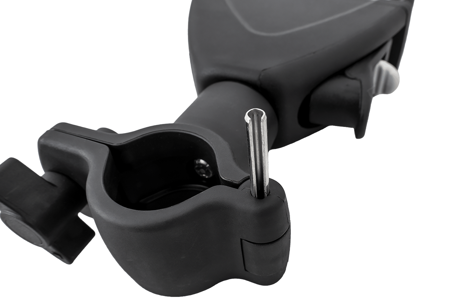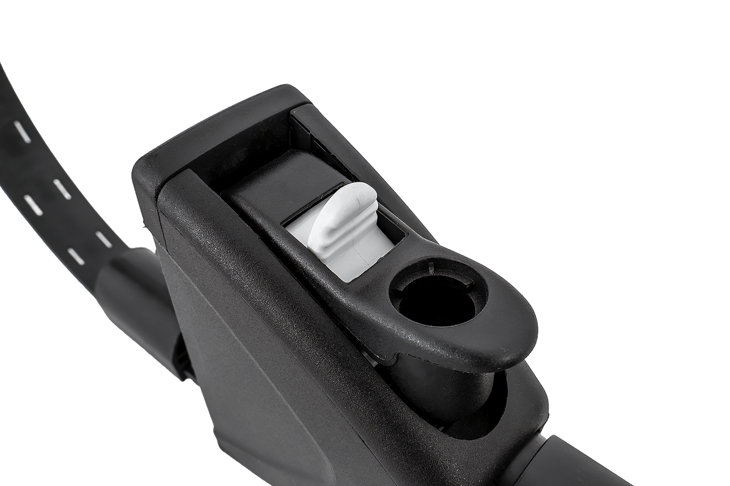 Die erste Rahmenhalterung für den Atera Strada Sport Anhängerkupplungs-Fahrradträger ermöglicht eine stabile und sichere Befestigung des Fahrrads während des Transports. Diese Halterung fixiert den Rahmen sicher, minimiert dessen Bewegung und erhöht so den Fahrkomfort.