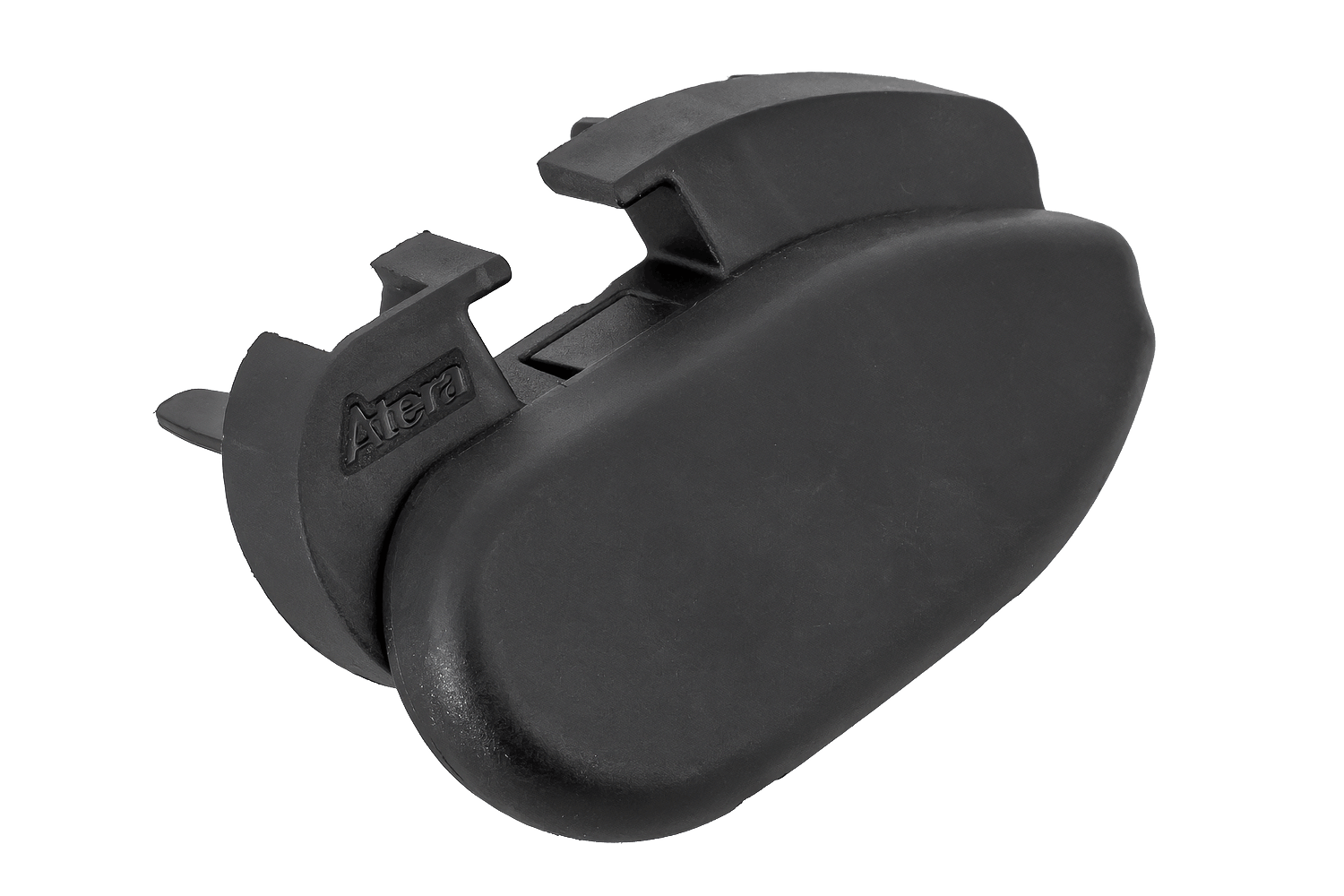 Die Endkappe (links) für die aerodynamischen Aluminium-Querträger von Atera Signo ist ein Abschlusselement, das das Ende des Querträgers schützt und die Optik des gesamten Dachträgers aufwertet. Sie schützt das Profilinnere vor Schmutz und äußeren Einflüssen und trägt so zur Langlebigkeit des Systems bei.
