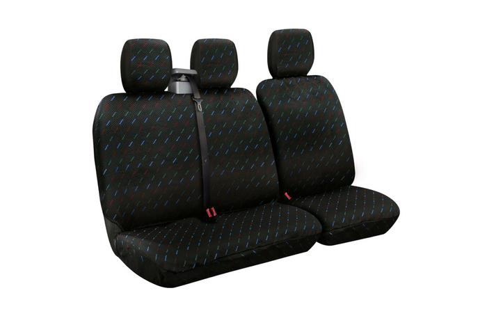 Das schwarze Sitzbezugset Dido-2 ist eine strapazierfähige und optisch ansprechende Lösung für Transportersitze , auch solche mit Gurtstraffer. Die Bezüge bestehen aus hochwertigem Jacquard-Gewebe , das sich durch erhöhte Abriebfestigkeit auszeichnet und die Polsterung effektiv vor Schmutz, Abnutzung und mechanischen Beschädigungen schützt.