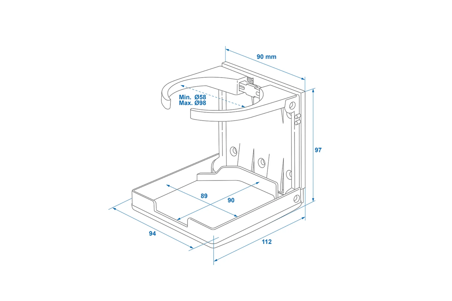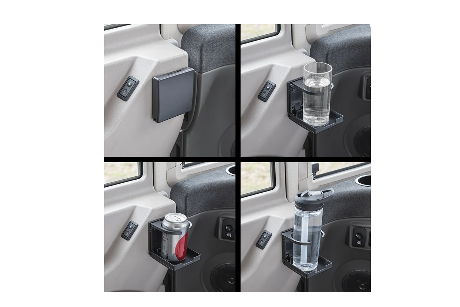 Mit einer verstellbaren Klemme (58–98 mm) hält der Halter Becher, Dosen und Flaschen verschiedener Größen sicher fest. Die Konstruktion aus robustem ABS-Kunststoff und Stahl gewährleistet Langlebigkeit und Widerstandsfähigkeit im täglichen Gebrauch auf Reisen.